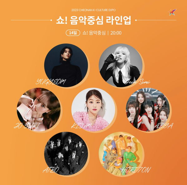 이번 2023년 쇼! 음악중심에서는 다양한 아티스트들이 출연할 예정입니다. 특히, 14일에 열리는 천안 K-Culture Expo에서는 YUGYEOM, Jeon Somi, JO YURI, KISUM, ADYA, AROHA, HORITON 등 총 7명의 아티스트가 무대에 오릅니다. 이들은 각기 다른 매력을 가진 아티스트들로, 팬들에게 잊지 못할 공연을 선사할 것입니다.